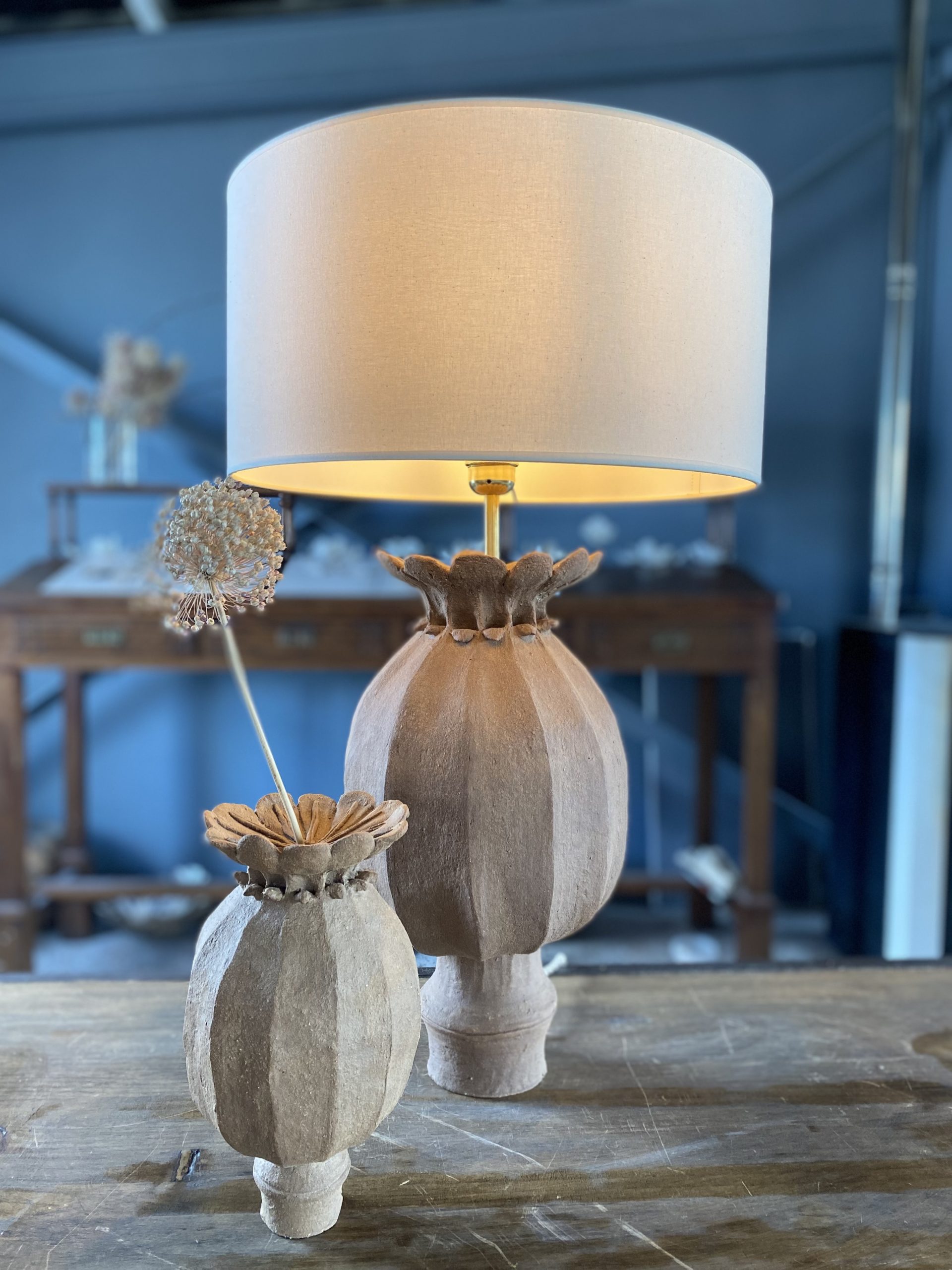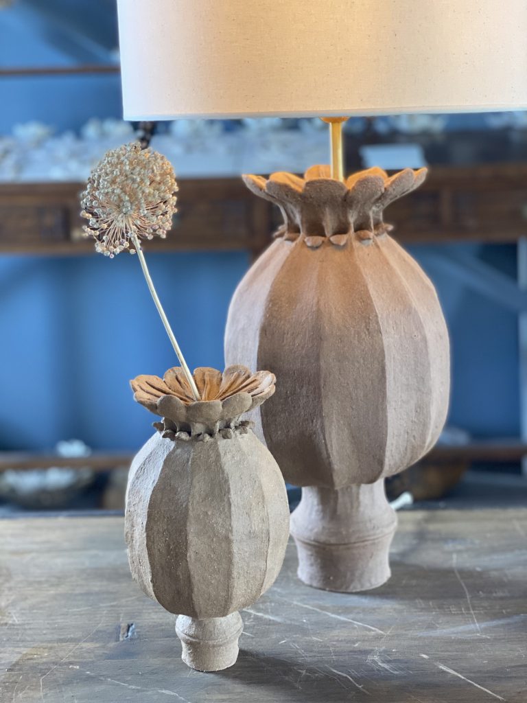 Presentamos las lámparas cápsula de amapola, con una altura de 50 cm (sin pantalla).